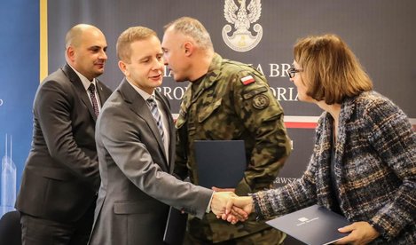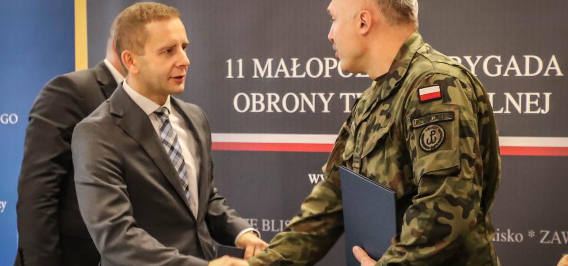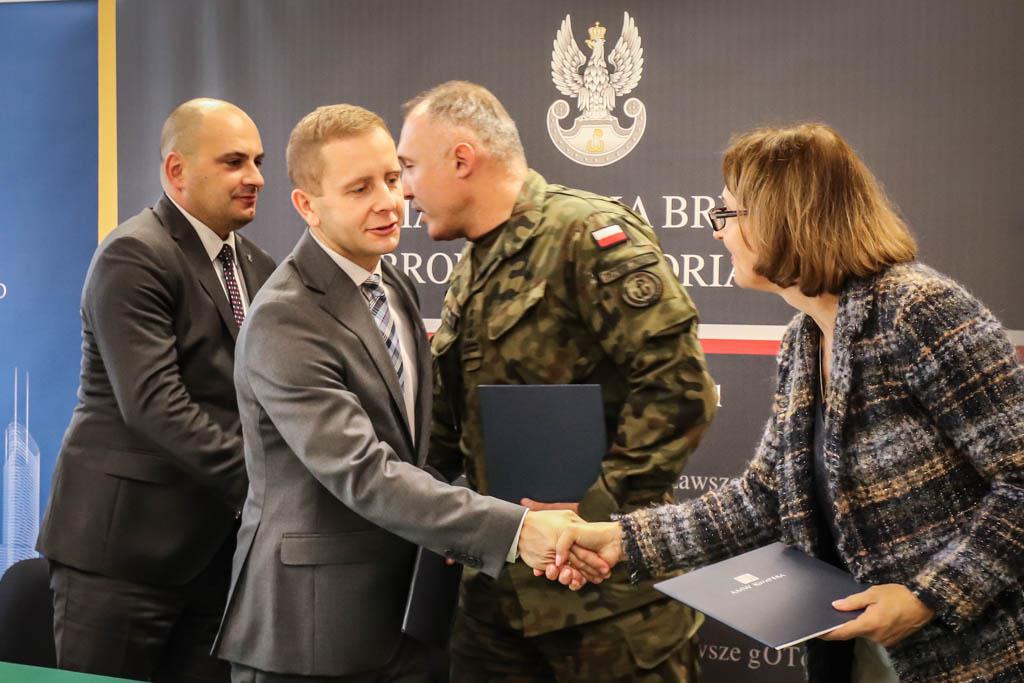 W uroczystości podpisania porozumienia dotyczącego współpracy wzięli udział: zastępca prezesa AMW Dominik Zaremba, dowódca 11 Małopolskiej Brygady Obrony Terytorialnej płk Krzysztof Goncerz, prezes AMW TBS KWATERA Agnieszka Bolesta, dyrektorzy oddziałów AMW - Przemysław Wierzba i TBS KWATERY - Daniel Głowacz oraz żołnierze służący w 11 MBOT.