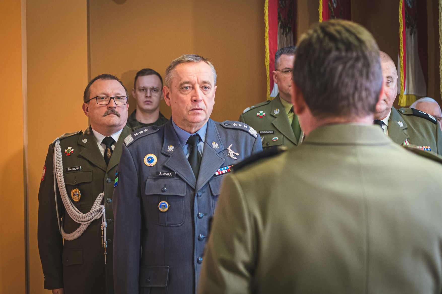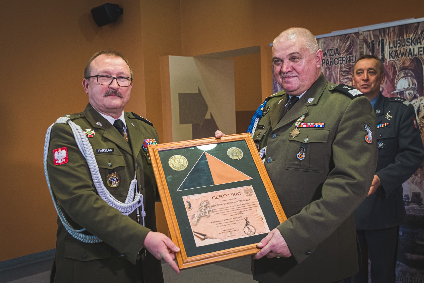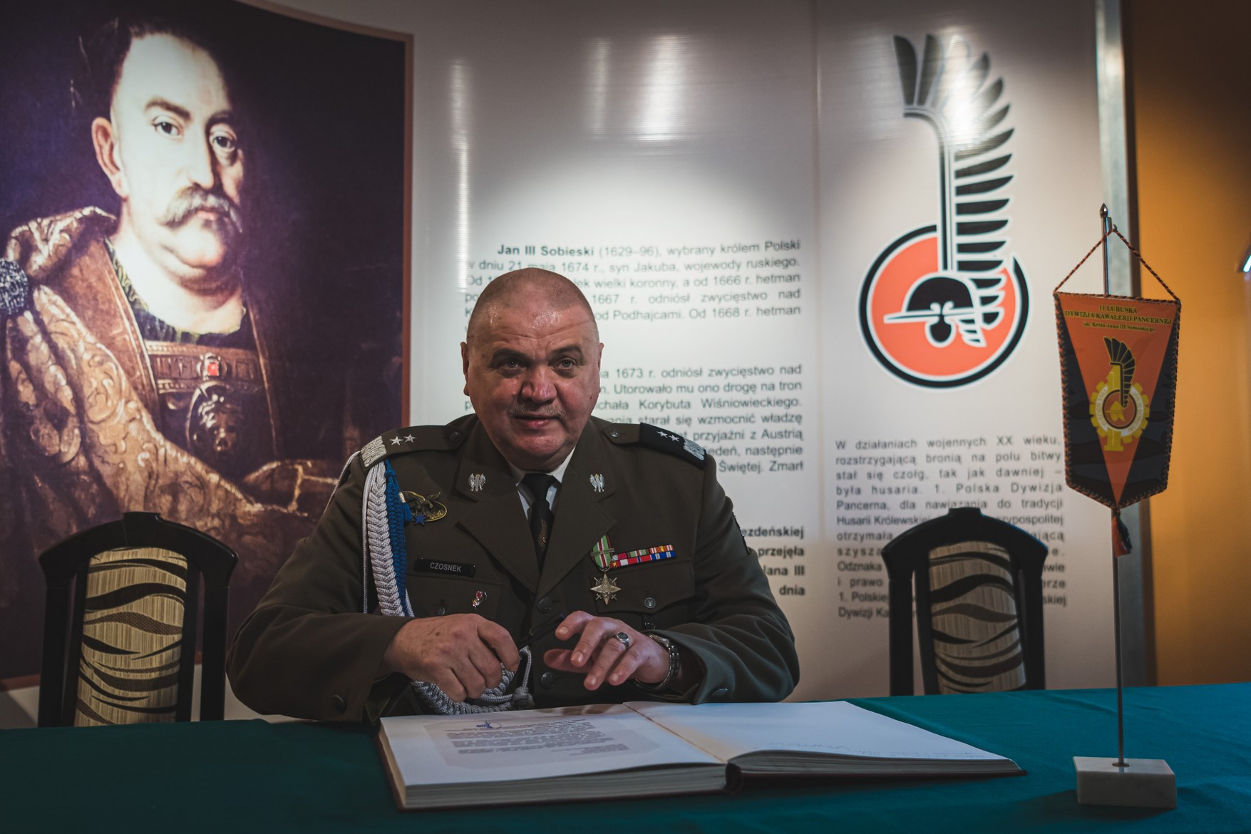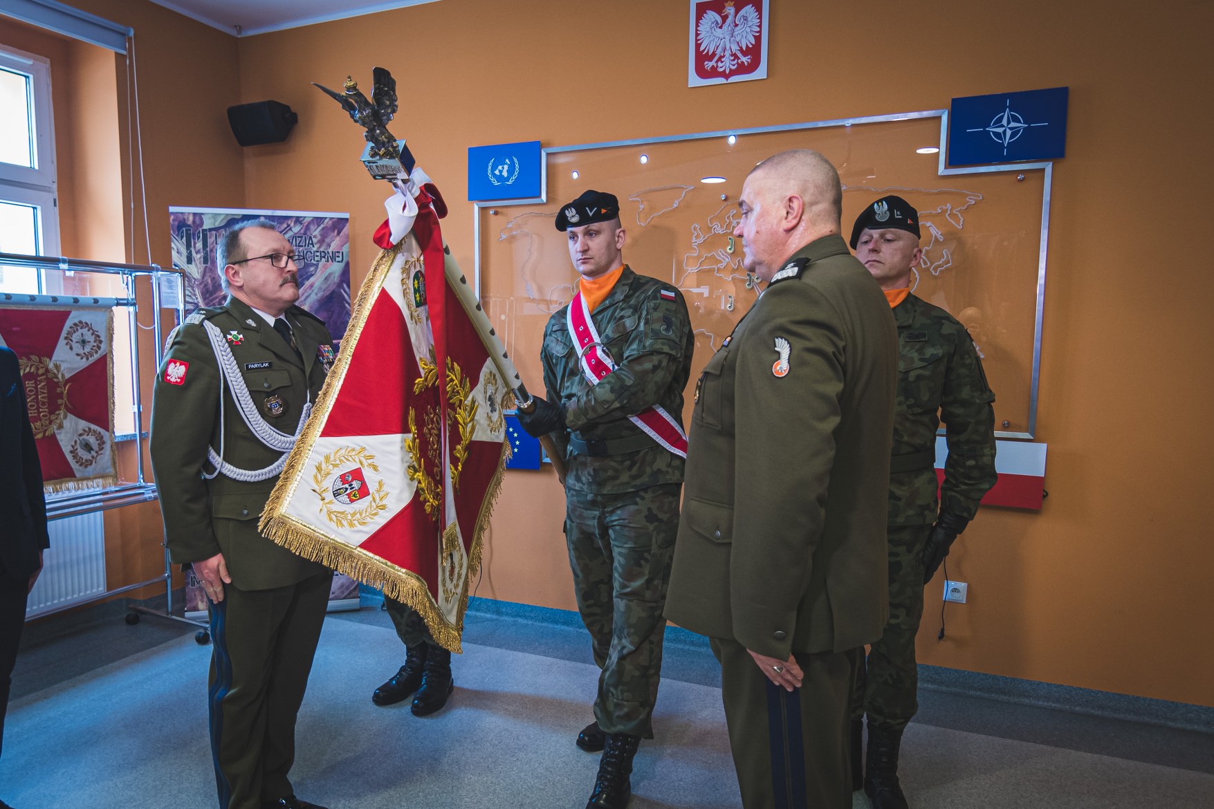 Generał Czosnek tuż po przybyciu do Sali Tradycji dokonał wpisu do księgi pamiątkowej, a następnie rozpoczęła się właściwa część uroczystości. Po odczytaniu decyzji i nominacji na nowe stanowiska służbowe, miał miejsce główny punkt uroczystości przekazania sztandaru jednostki wojskowej. Generał Czosnek przekazał sztandar wojskowy jednostki dotychczasowemu zastępcy generałowi Parylakowi, który odtąd pełnił będzie obowiązki dowódcy Czarnej Dywizji.