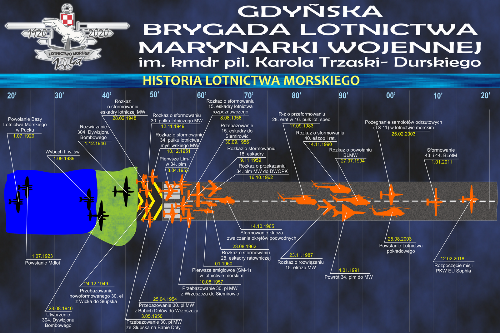 Sto lat temu, w lipcu 1920 roku, pięć miesięcy po symbolicznych zaślubinach Polski z Bałtykiem powstała w Pucku Baza Lotnictwa Morskiego. Już po dwóch tygodniach, mechanicy, dysponując zaledwie kilkoma wrakami, pozostawionymi przez armię pruską, zmontowali wodnosamolot typu Friedrichshafen FF.33 H, którym, w dniu 15 lipca 1920 r, pierwszy lot nad Morzem Bałtyckim wykonał chor. pil. Andrzej Zubrzycki. Dzień ten uznawany jest za symboliczną datę narodzin polskiego lotnictwa morskiego. Dla podkreślenia roli Pucka, kolebki polskiego lotnictwa morskiego pod koniec ubiegłego roku rozpoczęliśmy proces przygotowań do uczczenia 100 lat obecności polskich skrzydeł nad Bałtykiem uroczystą zbiórką stanów osobowych BLMW na rynku w Pucku. Wraz z naszymi partnerami: Miastem Puck i Stowarzyszeniem Historycznym Morskiego Dywizjonu Lotniczego. W tym br. celu, już w lutym zainicjowaliśmy serię spotkań, w trakcie których ustaliliśmy zarys współpracy. Niestety, harmonogram naszych działań przygotowawczych wystawiony został na próbę wraz z początkiem marca i postępującą pandemią koronawirusa. Z większości planowanych przedsięwzięć musieliśmy, ze zrozumiałych względów, zrezygnować. Trudno byłoby realizować jakiekolwiek spotkania w sferze publicznej, w warunkach koniecznego dystansu społecznego, stąd decyzja o anulowaniu uroczystej zbiórki na rynku w Pucku oraz towarzyszącym jej przedsięwzięć.