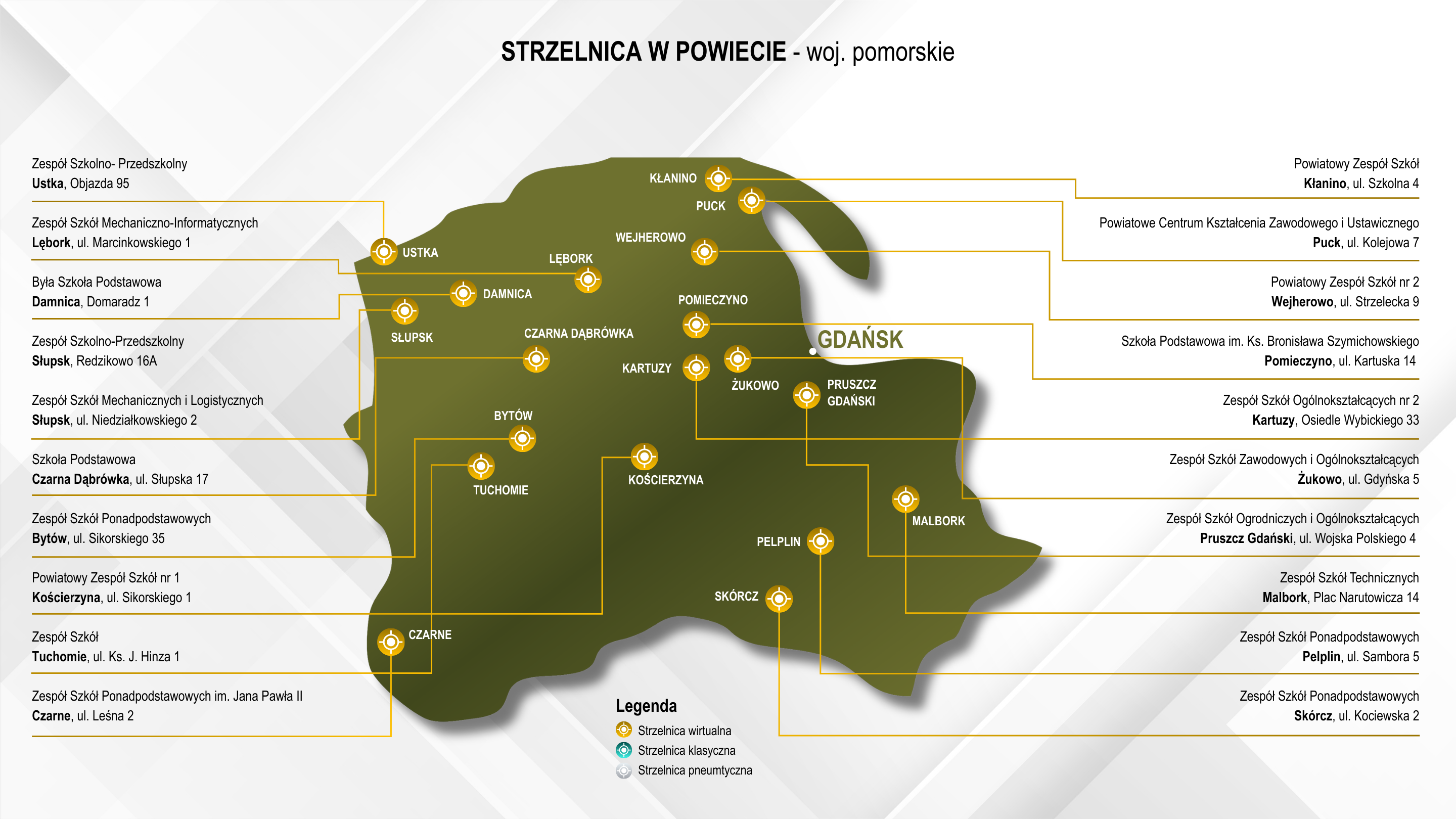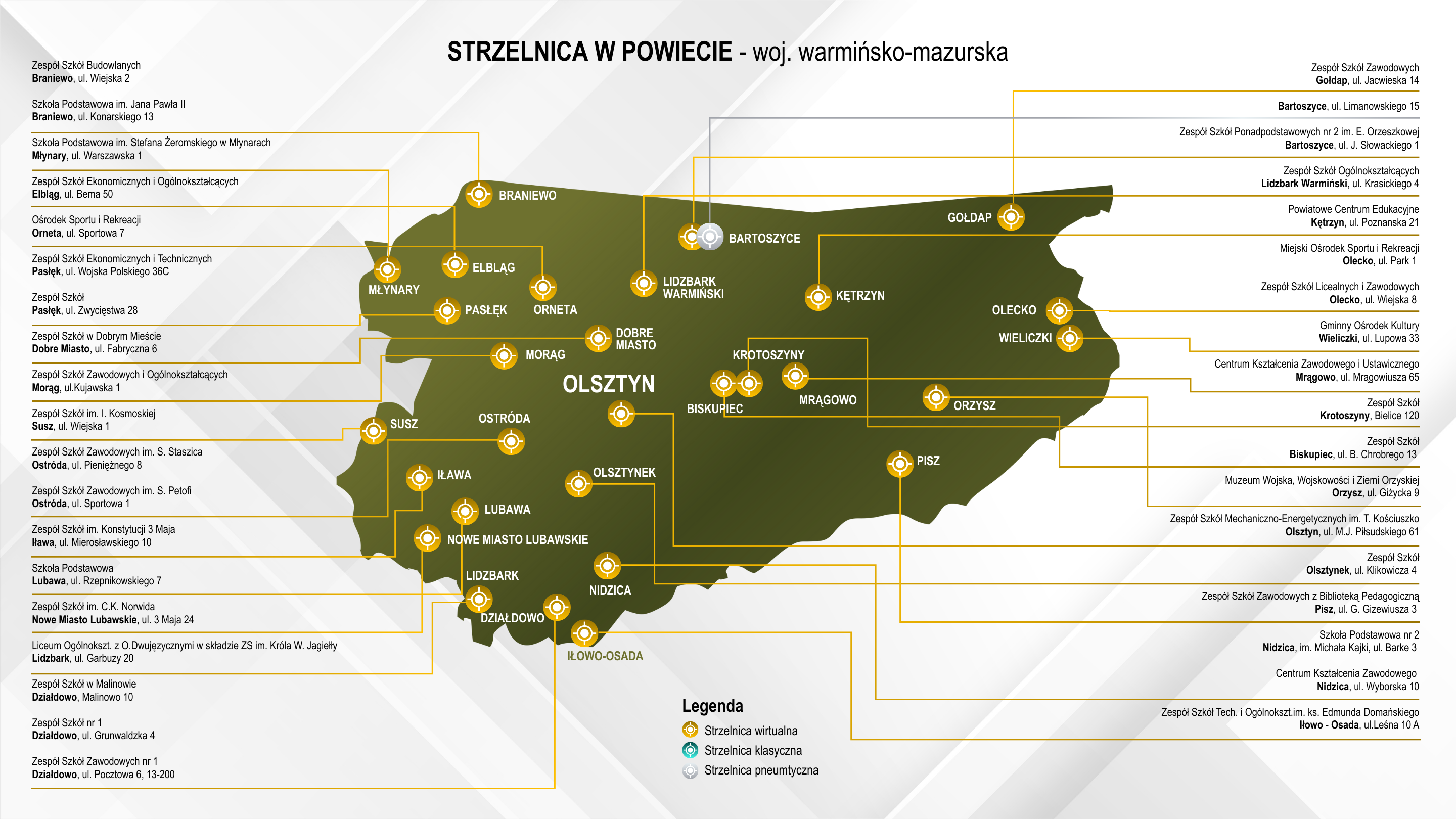 Projekt „Strzelnica w Powiecie” oparty jest o zapisy art. 45 ust. 1 pkt 6 (Dz. U. z 2024 r., poz. 1572) ustawy z dnia 1 października 2024 r. o dochodach jednostek samorządu terytorialnego oraz § 2 rozporządzenia Ministra Obrony Narodowej z dnia 11 czerwca 2025 r. w sprawie dofinansowania z budżetu państwa zadań związanych z budową, remontami i utrzymaniem strzelnic oraz rozwijaniem sportu strzeleckiego (Dz. U. z 2025 r., poz. 795).