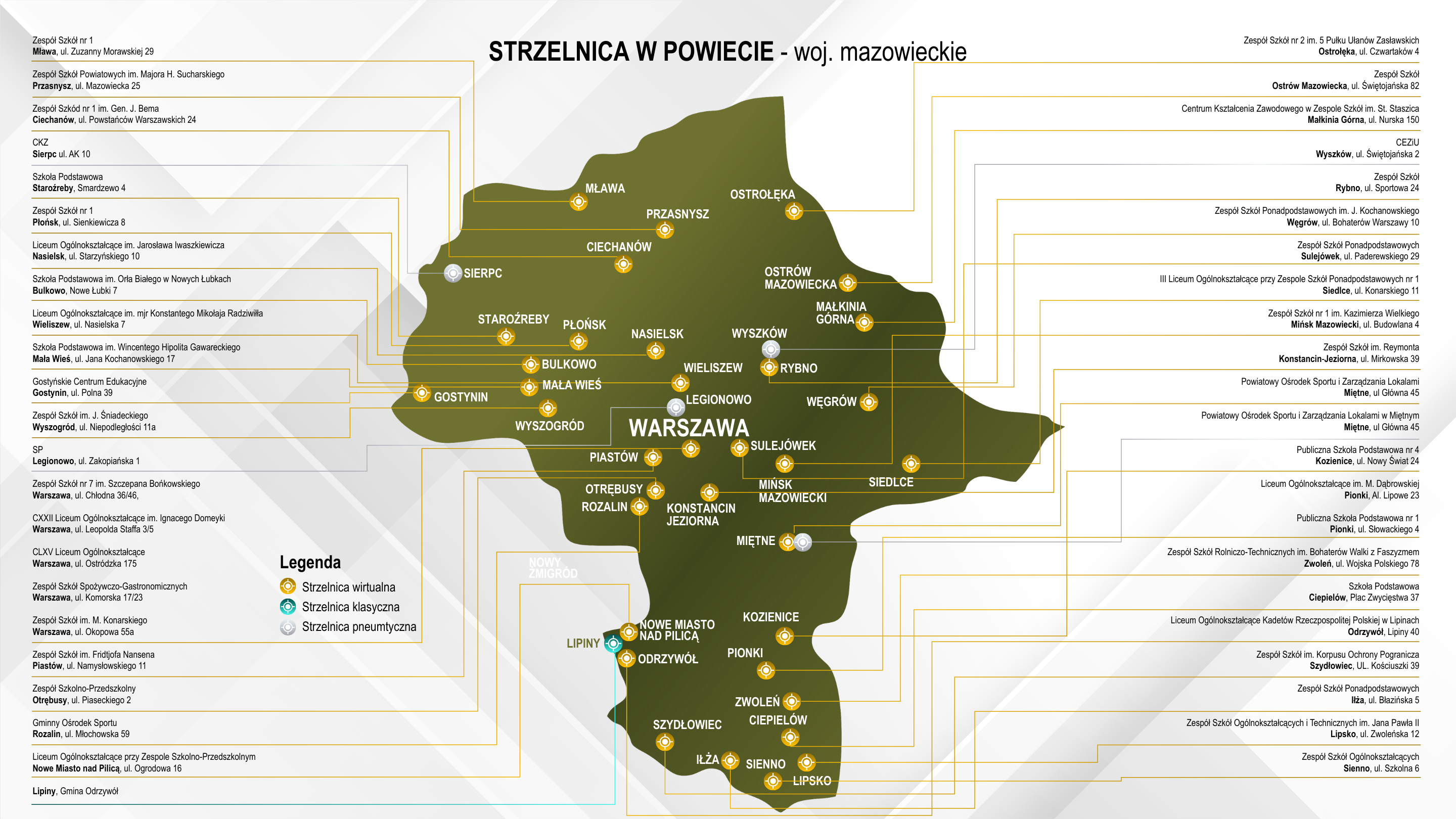W tym celu powstał program wspierania jednostek samorządu terytorialnego w zakresie budowy i rozwoju infrastruktury strzeleckiej „Strzelnica w powiecie”, który określa możliwości zwiększenia infrastruktury strzeleckiej do wykorzystania w realizacji zadań przez MON poprzez dofinansowywanie zadań jednostek samorządu terytorialnego szczebla gminnego, powiatowego i wojewódzkiego, związanych z budową, remontami i utrzymaniem strzelnic oraz rozwijaniem sportu strzeleckiego, w szczególności wśród dzieci i młodzieży oraz organizacji proobronnych.