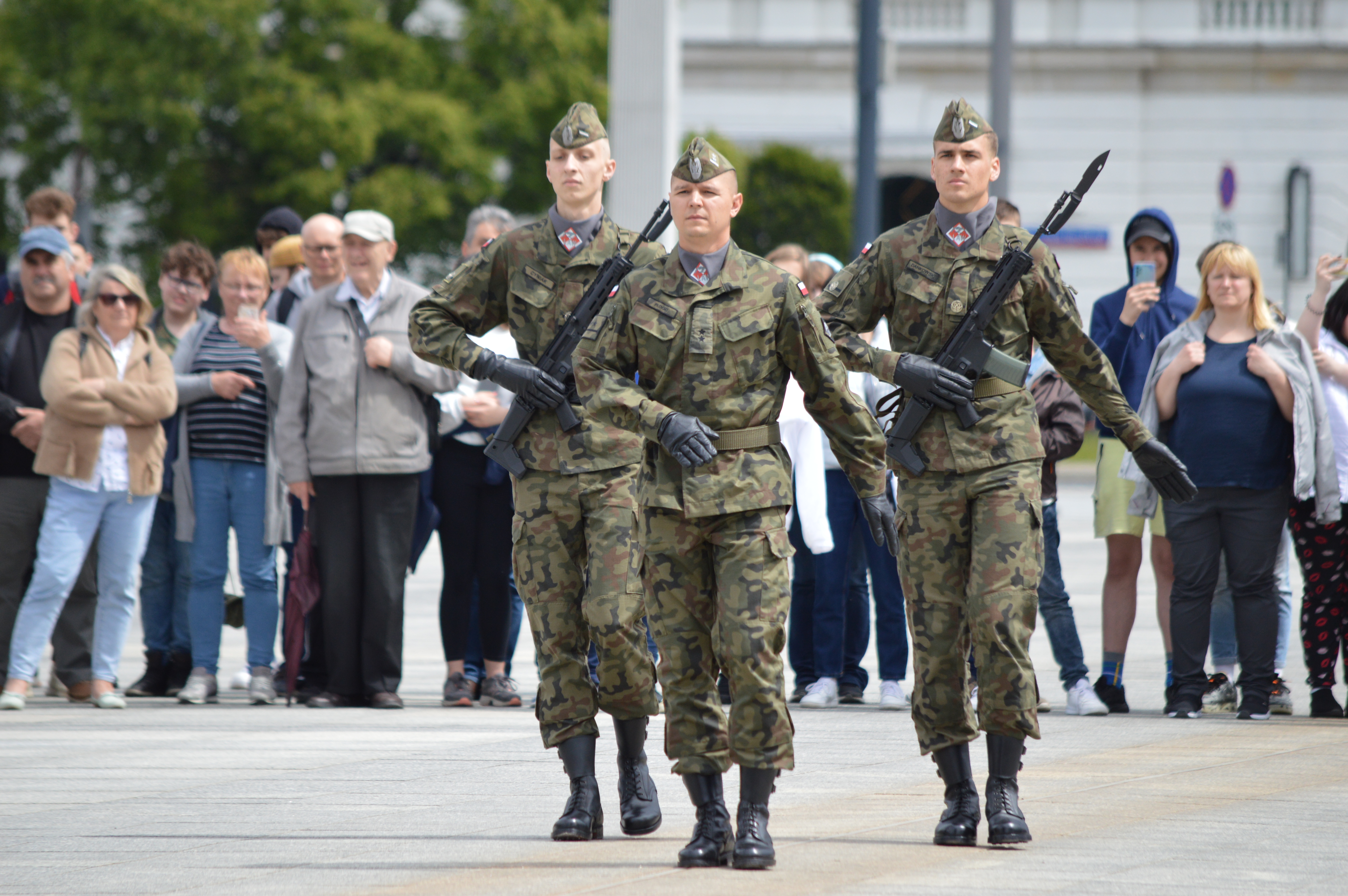 The Solemn Changing of the Honorary Post is a symbolic assumption of the perpetual soldiers' guard at the Tomb of the Unknown Soldier in Warsaw, which takes place every Sunday at 12.00 in Marshal Józef Piłsudski Square. The guard service in the most important place of national remembrance, and remembrance of the heroic military deeds of Polish soldiers, is of immeasurable value. It is undoubtedly a token of gratitude to those who died in the fight for their Homeland. It is performed in accordance with the rules governing the guard service, with changes in the post 24 hours a day, 7 days a week. However, a special character is given by the ceremonial setting only during the Sunday change.