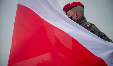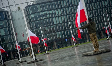 Flaga została podniesiona na 35 masztach ustawionych w kontur Polski.