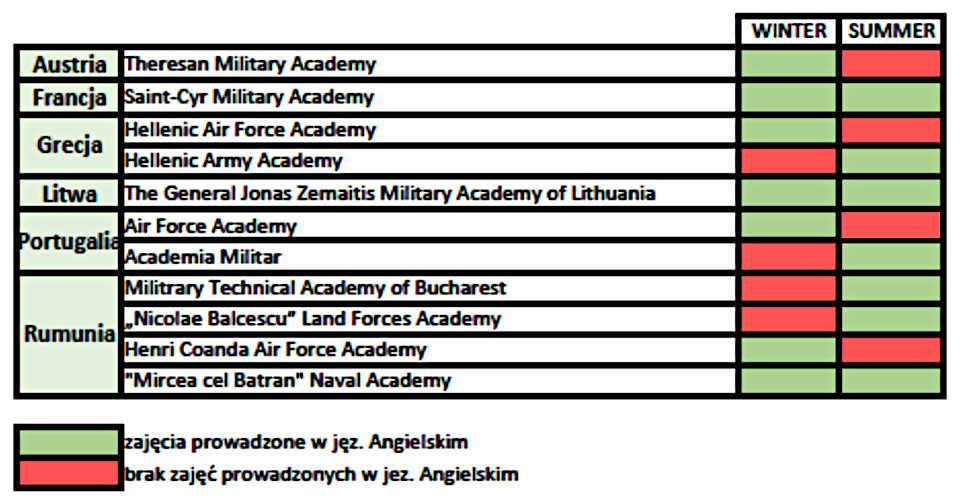 Obecnie WAT ma podpisane umowy z uczelniami zagranicznymi z Austrii, Belgii, Bułgarii, Czech, Danii, Finlandii, Francji, Grecji, Hiszpanii, Litwy, Łotwy, Macedonii Północnej, Niemiec, Portugalii, Rumunii, Słowacji, Słowenii ‚Turcji, Węgier i Włoch, z czego 24 uczelnie to uczelnie wojskowe, a 63 uczelnie cywilne.